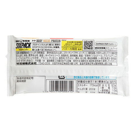 【UHA味覚糖】【UHA Mikakto】【健康食品】【固形食】【保存食】●原材料:乳たんぱく/コラーゲンペプチド/ピーナッツ/植物油脂/大豆たんぱくパフ(分離大豆たんぱく/米粉/麦芽抽出物/食塩)/キャラメルソース/脱脂粉乳/食物繊維/食塩/甘味料(ソルビトール/アスパルテーム・L-フェニルアラニン化合物)/アラニン/グリセリン/着色料(カラメル)/香料/乳化剤/増粘多糖類(一部に乳成分・落花生・大豆・ゼラチンを含む)●栄養成分表示:【1本(標準40g)当たり】エネルギー 173kcal/たんぱく質 20.0g/脂質 6.9g/炭水化物 8.3g(糖質 7.3g/食物繊維 1.0g)/食塩相当量 0.2g●内容量:1本●名称:栄養調整食品(たんぱく含有食品)●広告文責:ゼビオコミュニケーションネットワークス株式会社(ナビダイヤル:0570-550-802)●メーカー名:味覚糖株式会社●生産国:日本【返品・注意事項について】※食料品につき、ご注文後の返品・交換はお受けできません。